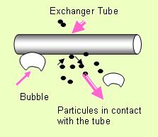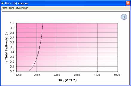 Schematically, the heat transfer phenomenon can be explained by the following figure : There are a great number of correlations and models proposed in the fluidization literature. At high temperatures three phenomena interfere in the process of heat transfer between an exchanger tube and the gas-solid suspension: "convection", "conduction" and "radiation". On the other hand, fluidization properties (bubble size, bed voidage…) influence strongly the overall heat transfer coefficient. It is always difficult to choose the proper method among the list of different methods. Ergun provides some chosen methods (or correlation) for each case. Results are presented in fully interactive diagrams where the user can study the effect of operating conditions on the designed variable.